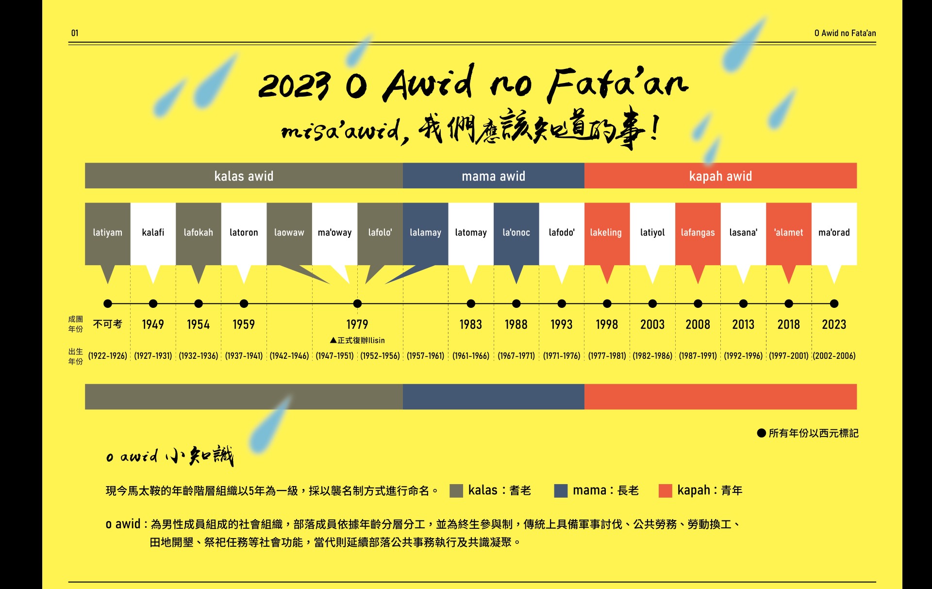 Ilisin 祭儀復振至今已 47 年,2023 年正適逢每五年一次的階層晉升儀式,邁入新的紀元,準備晉升耆老Kalas的Lafolo’ 拉福樂階層,是復振當時成立的最小階層,現今都是年滿65歲以上的法定老人,是否能獲得哥哥們的認可與接納呢?今年大會的主辦階級Lakeling拉可林,該如何回應青年們期盼恢復祭儀文化的想望?